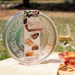 Pour tous les amoureux de la Provence et des trésors culinaires qu’elle détient, découvrez cette magnifique boîte métal regroupant nos recettes de biscuit apéritifs les plus appréciées : (Re)découvrez nos 4 recettes phares dans ce coffret cadeau prêt à offrir.