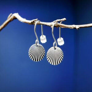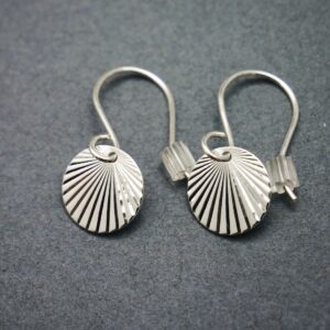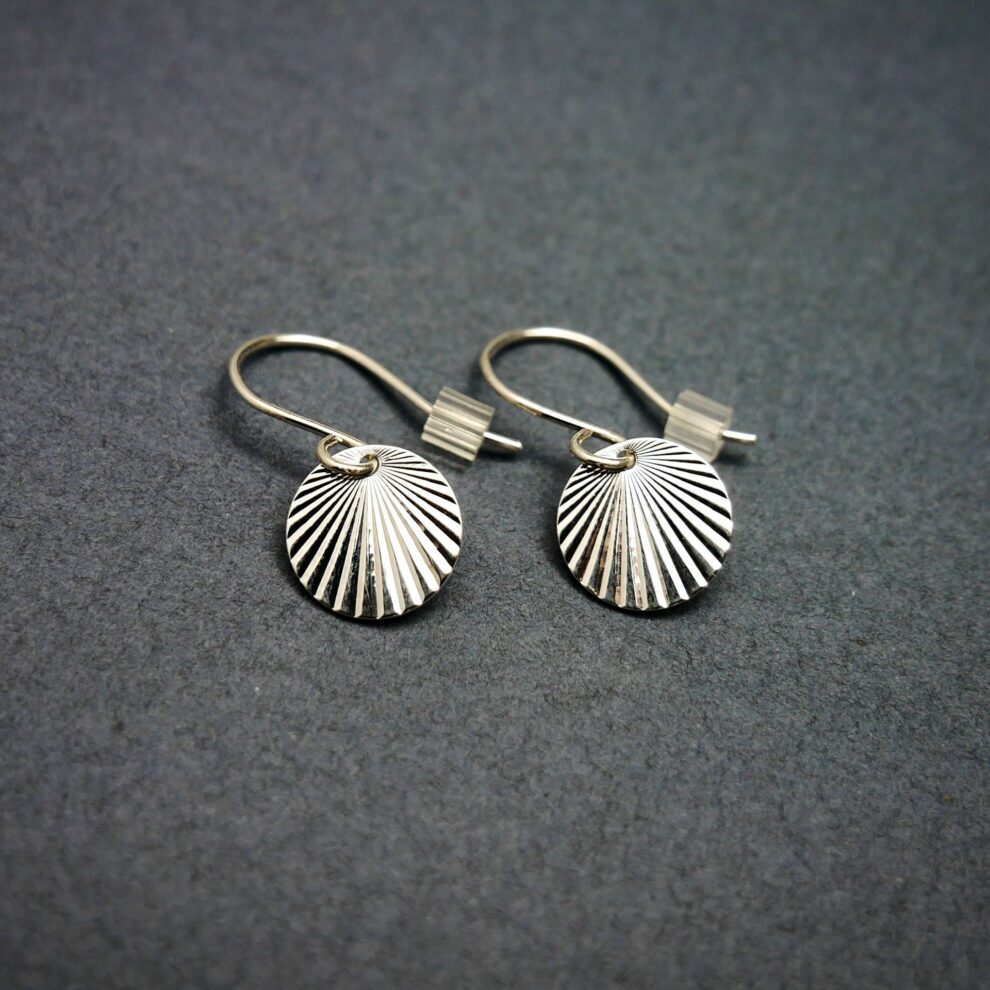 Boucles d’oreilles pendantes minimalistes en argent 925 recyclé, sans nickel. Inspirées du soleil levant, légères et délicates, elles se portent au quotidien ou en soirée.