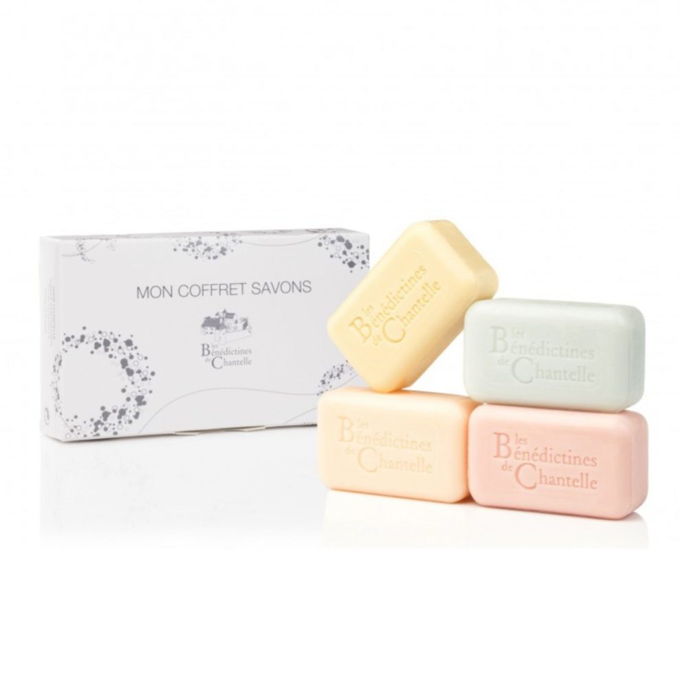 Pour varier les plaisirs, découvrez le coffret de 4 savonnettes de l’Abbaye des Bénédictines de Chantelle, aux senteurs fleuries et traditionnelles :