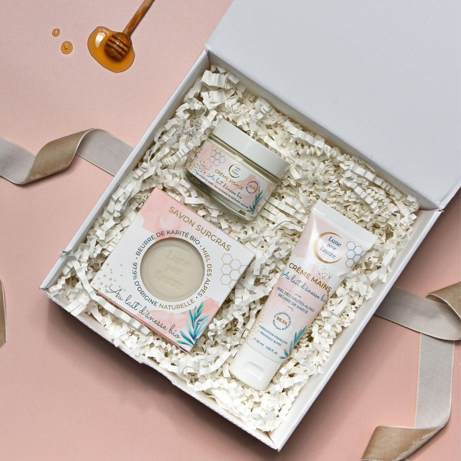 Offrez un véritable rituel de douceur avec notre coffret soin à base de lait d’ânesse bio, enrichi en miel des Hautes-Alpes et en beurre de karité. Pensé pour les peaux sensibles et sèches, ce trio de soins naturels nettoie, nourrit et protège la peau au quotidien.