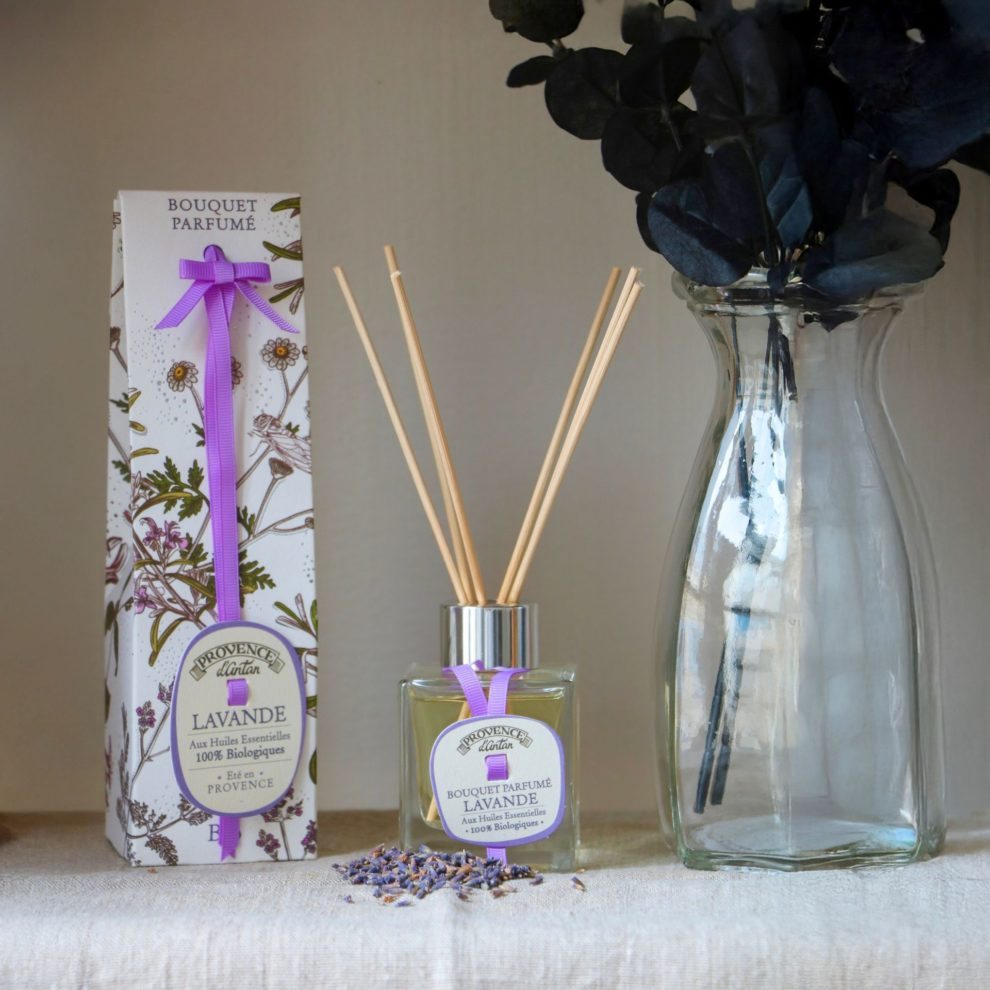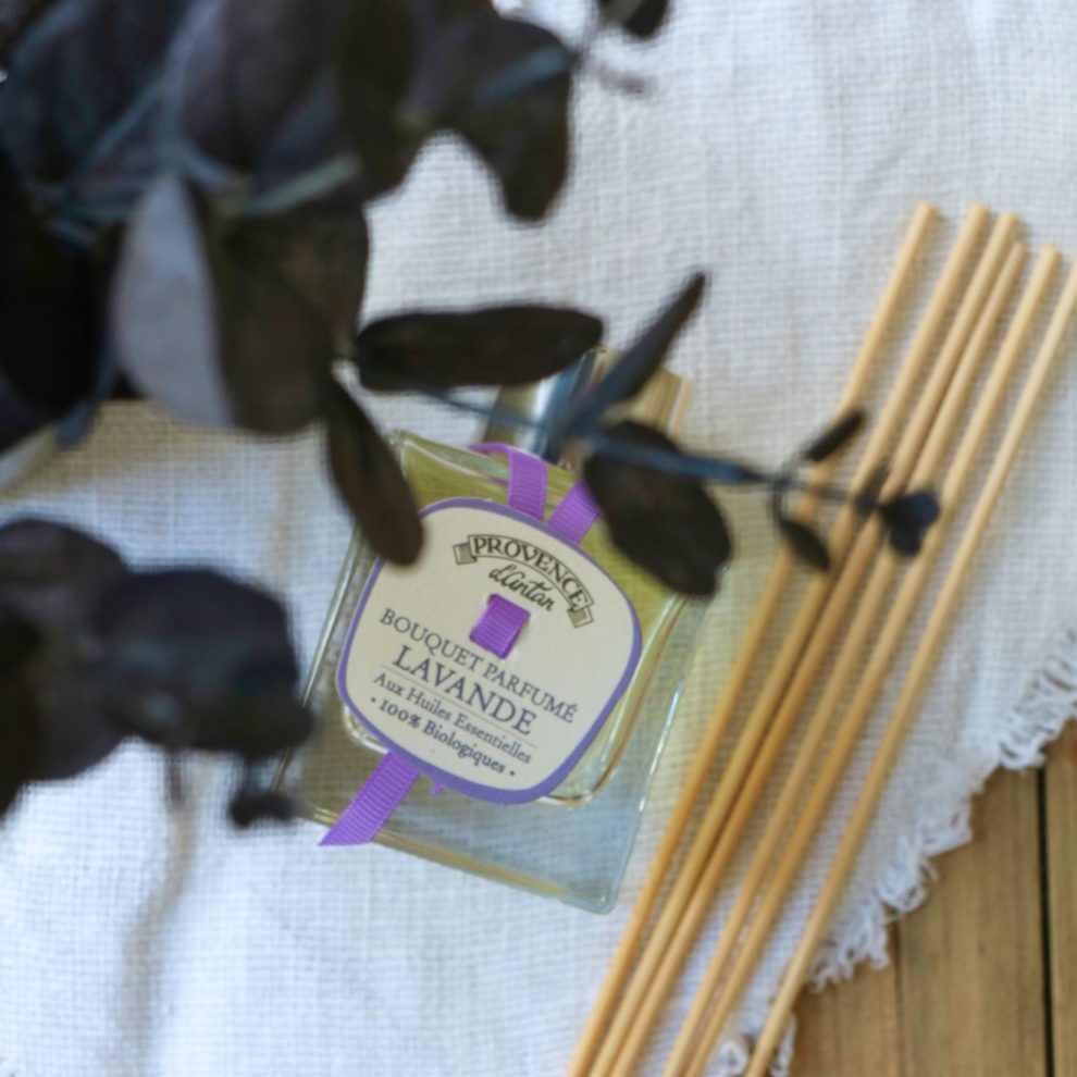 Découvrez la senteur fleurie de notre bouquet parfumé Lavande aux notes relaxantes de lavande associées à la fraîcheur dynamisante du romarin et du citron. Élaboré avec des huiles essentielles 100% d’origine biologique et contrôlé Ecocert, ce parfum naturel se diffuse par capillarité grâce à ses 6 tiges de rotin non traitées. Le bouquet parfumé Lavande peut s’utiliser dans toutes les pièces de la maison et vous transportera directement au cœur de la Provence !
