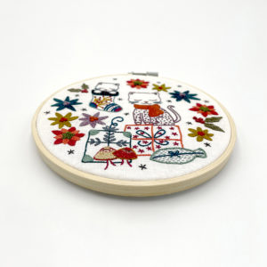 La broderie traditionnelle est un art ancien qui a traversé les générations et séduit encore aujourd’hui ! Nous vous proposons ce kit de broderie à la main « Pas de noël sans cadeaux ! » aux motifs chats et cadeaux de noël.