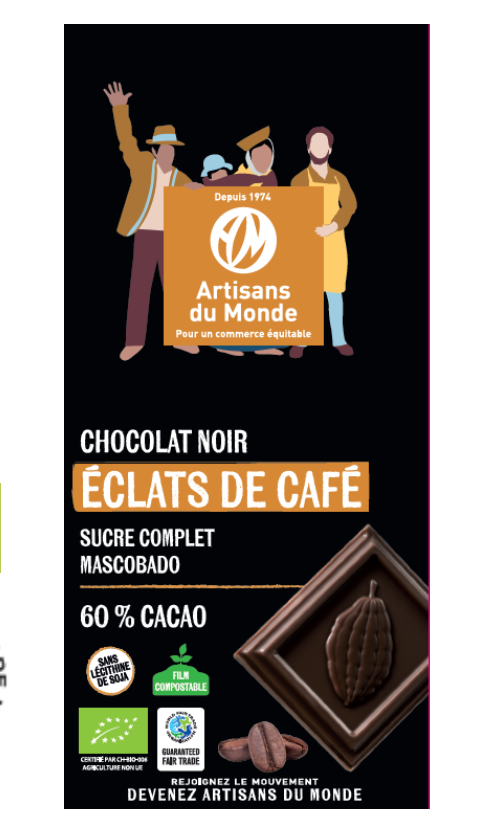 Chocolat noir 60% aux éclats de café issu de l’agriculture biologique et du commerce